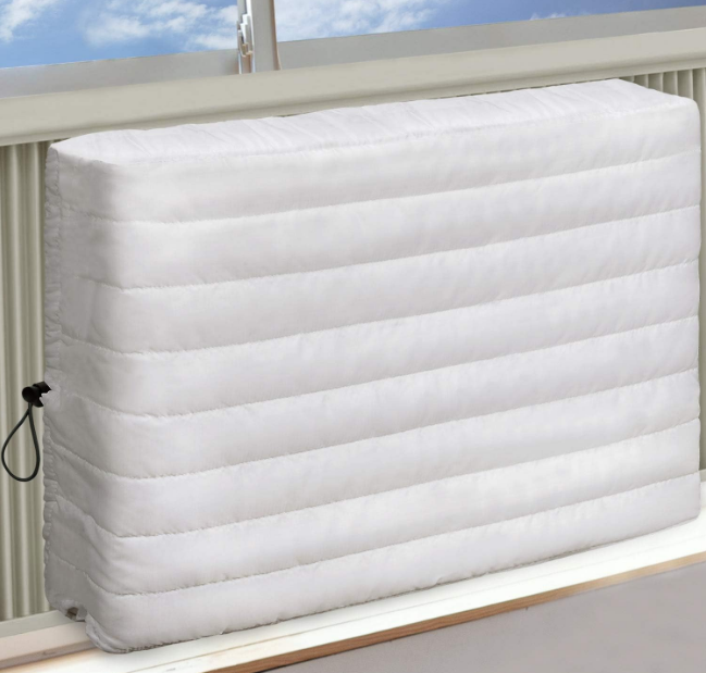 If you plan to keep the unit installed, a simple outdoor AC cover helps protect it from snow, ice, and wind. Choose a breathable cover so moisture does not get trapped inside. Avoid plastic tarps since they trap condensation and can damage the unit.
